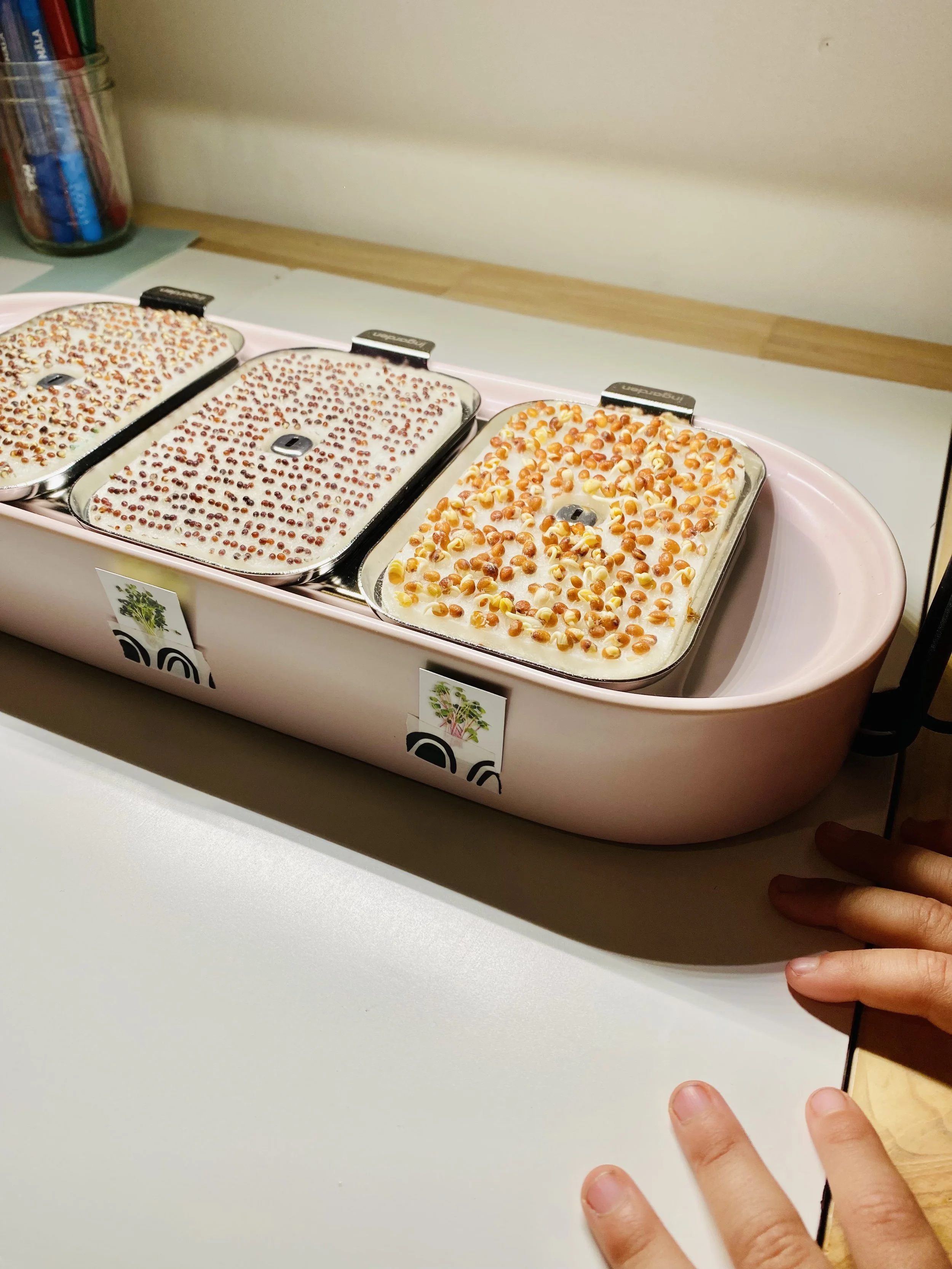 We ended our day by checking on the sprouts, noticing their growth, and playing a game that requires steady hands and a bit of strategy.